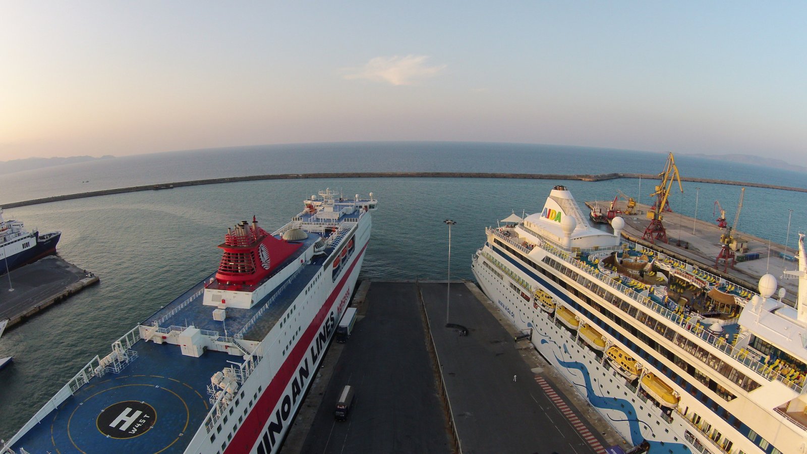 Ανάμεσα σε δύο πλοία-κολοσσούς στο Λιμάνι του Ηρακλείου (Φαιστός Παλας και Aida Aura). Ανεπανάληπτη θέα και φυσικά δέος.